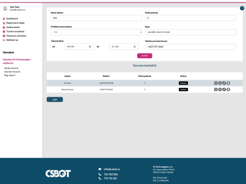 - Seznam hovorů a jejich statusy