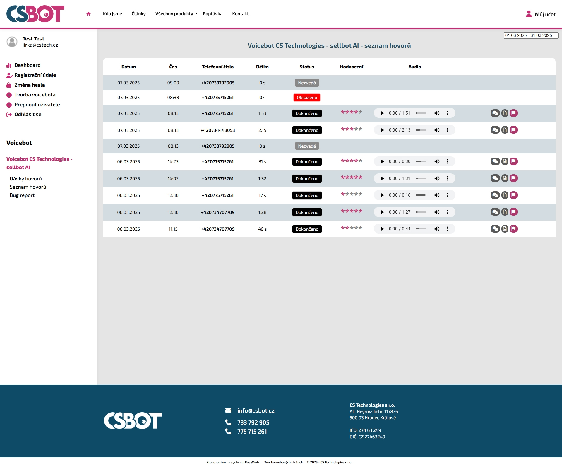 Ve chvíli, kdy Voicebot dělá přesně co má, vám předáme login do administračního rozhraní. Tam můžete vložit dávku hovorů ideálně z Excelu nebo CSV souboru. Nastavit si časové okno, počet pokusů volání a pak už jen sledovat co se děje.